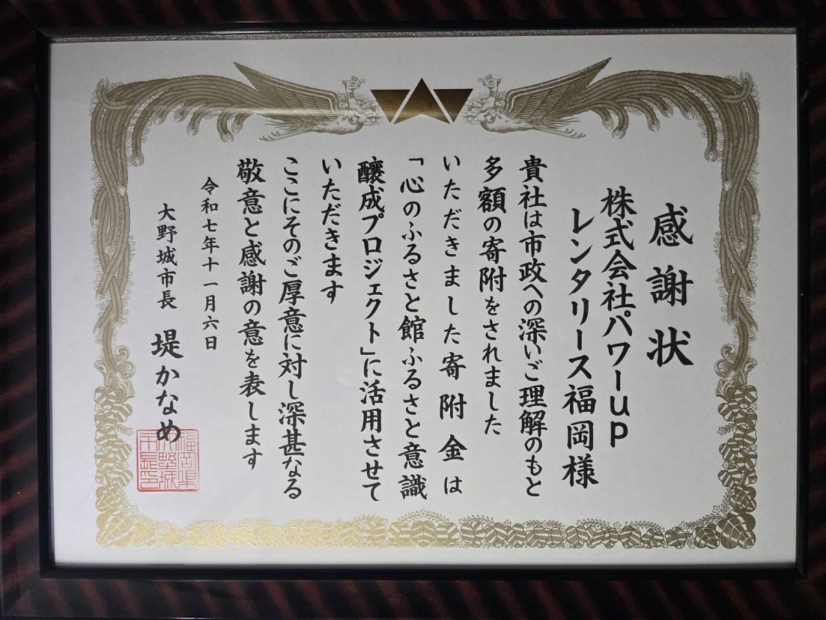 各自治体様よりお礼状ならびに感謝状をいただきました。